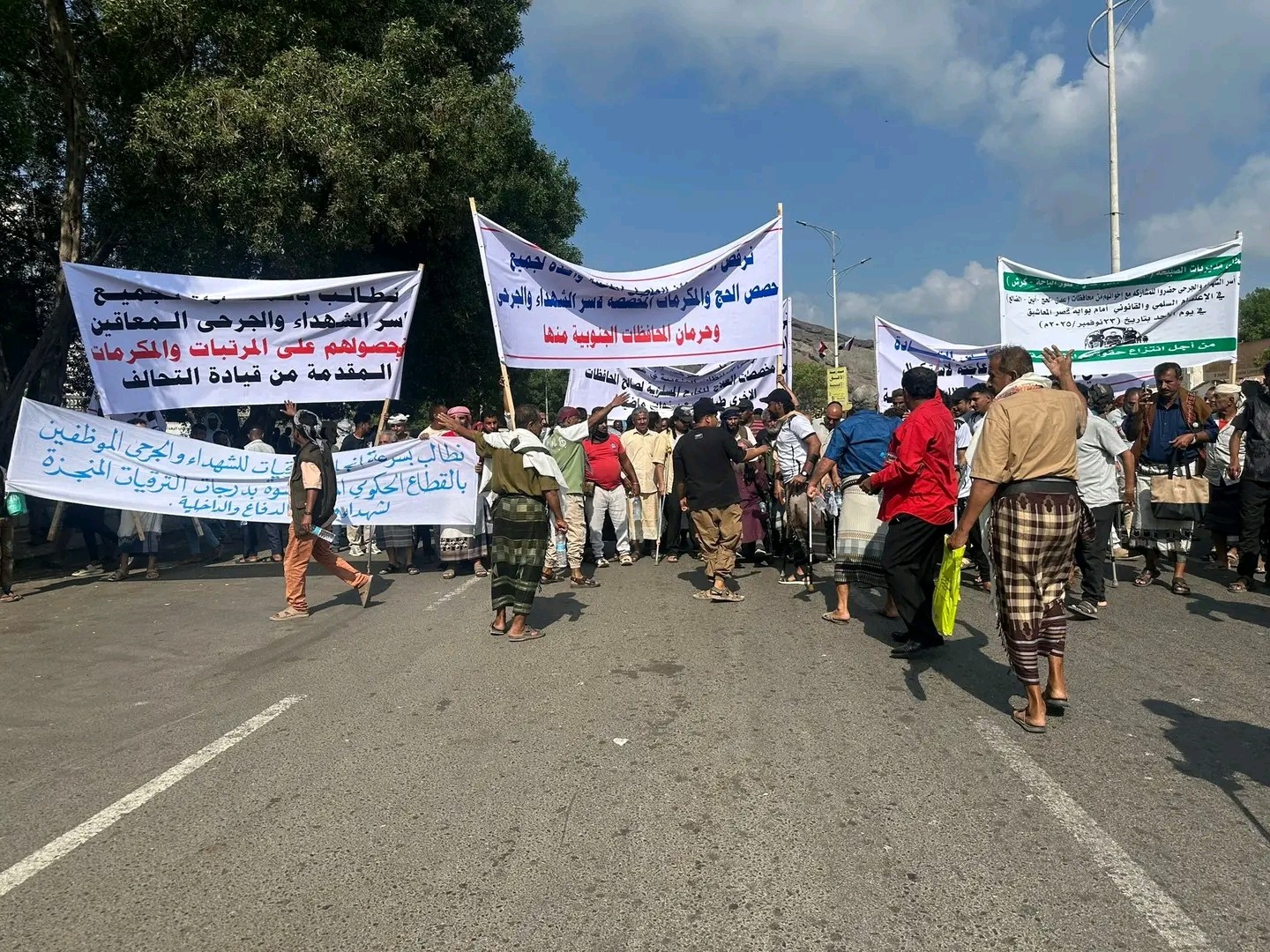 جرحى وأسر شهداء الجنوب يبدأون اعتصاماً مفتوحاً في عدن رفضاً للتهميش وللمطالبة بصرف الحقوق المتأخرة