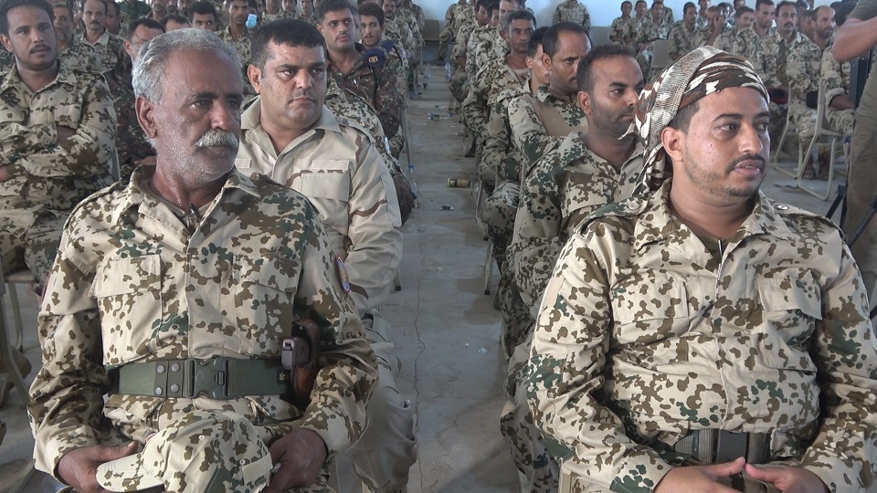 وفي الحفل الذي بدئ بالنشيد الوطني ألقى القوسي كلمة عبر فيها عن فخره واعتزاه أن ينال شرف إنابة قائد المقاومة الوطنية في تكريم أبطال سطروا ولا يزالون يسطرون مع زملائهم حراس الجمهورية ورفاق السلاح، ألوية العمالقة والألوية التهامية، ملاحم بطولية يخلدها التاريخ في أنصع صفحاته.