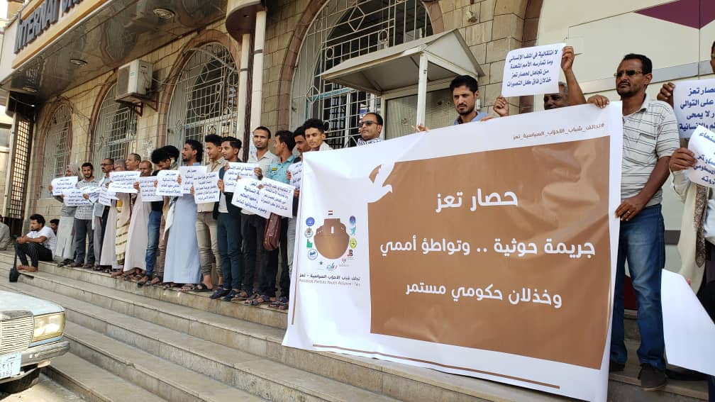 وعبر المحتجون عن رفضهم لـ"المعاناة المترتبة على استمرار الحصار الخانق الذي تفرضه مليشيا الحوثي على المدينة منذ سبع سنوات وما فاقمه من أوضاع إنسانية مثخنة بالأوجاع والظروف الصعبة والقاسية وانعدام العيش الكريم، ومواصلة القصف والحرب وأعمال القتل والقنص الحوثية على السكان والأعيان المدنية".