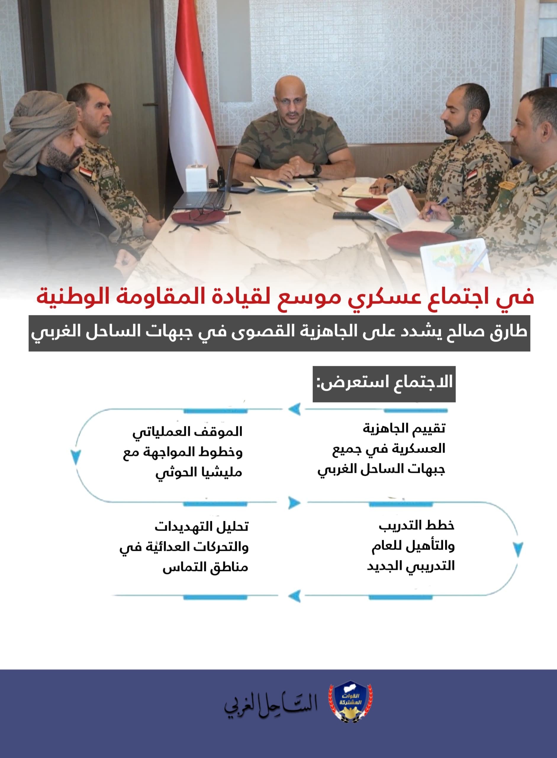 إنفوجرافيك| على طاولة الحسم: اجتماع موسع لرفع الجاهزية القتالية في الساحل الغربي
