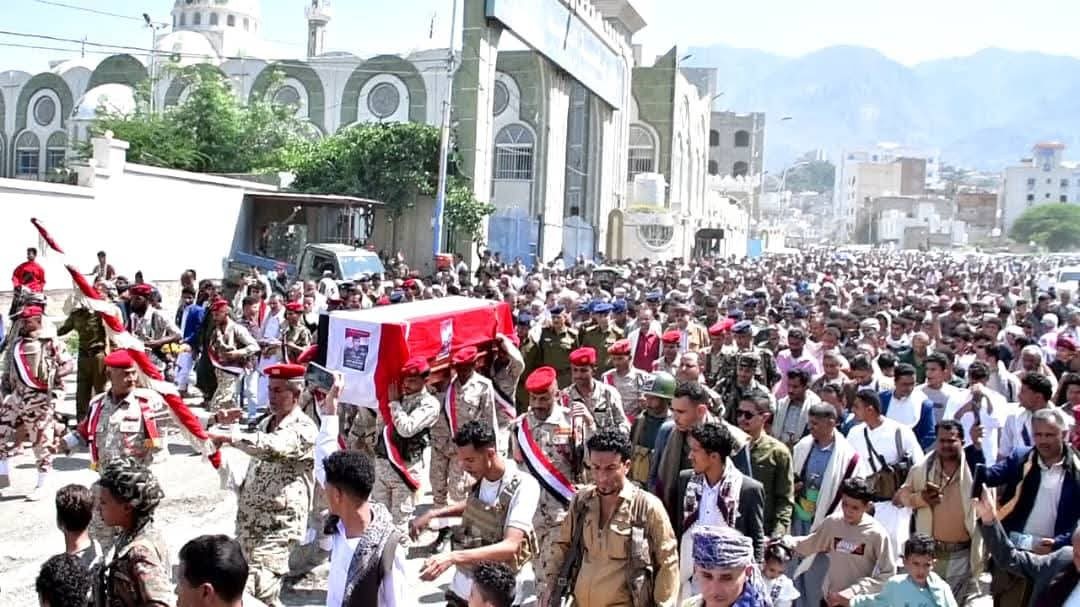 شيع آلاف المواطنين، الجمعة، في مدينة تعز، جثمان العقيد عبدالله النقيب، الذي استُشهد قبل نحو شهرين جراء عملٍ إرهابي غادر.
