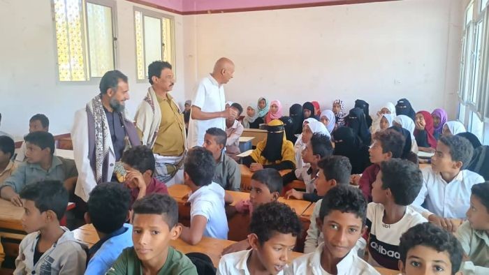 تفقد مدير عام المخا بمحافظة تعز، سلطان محمود، الأحد، سير العملية التعليمية في مدارس قرى الثوباني والغرافي بعزلة المشالحة- ريف المخا، ضمن جهود السلطة المحلية لمتابعة