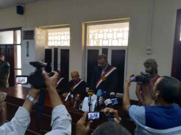 عقدت المحكمة الجزائية المتخصصة في العاصمة المؤقتة عدن، اليوم الخميس، برئاسة القاضي وهيب فضل، أولى جلسات محاكمة المتهمين بقضية الانقلاب على المؤسسات الدستورية في القضية رقم