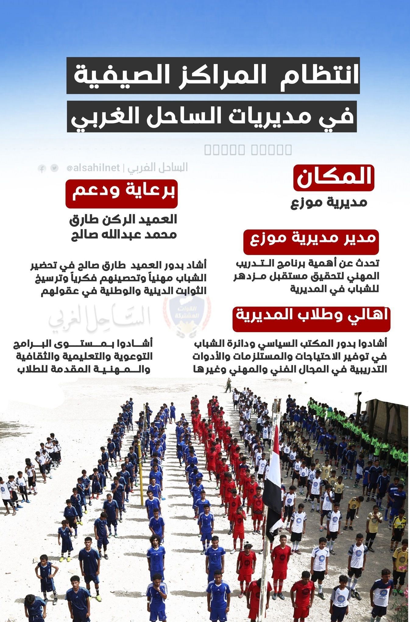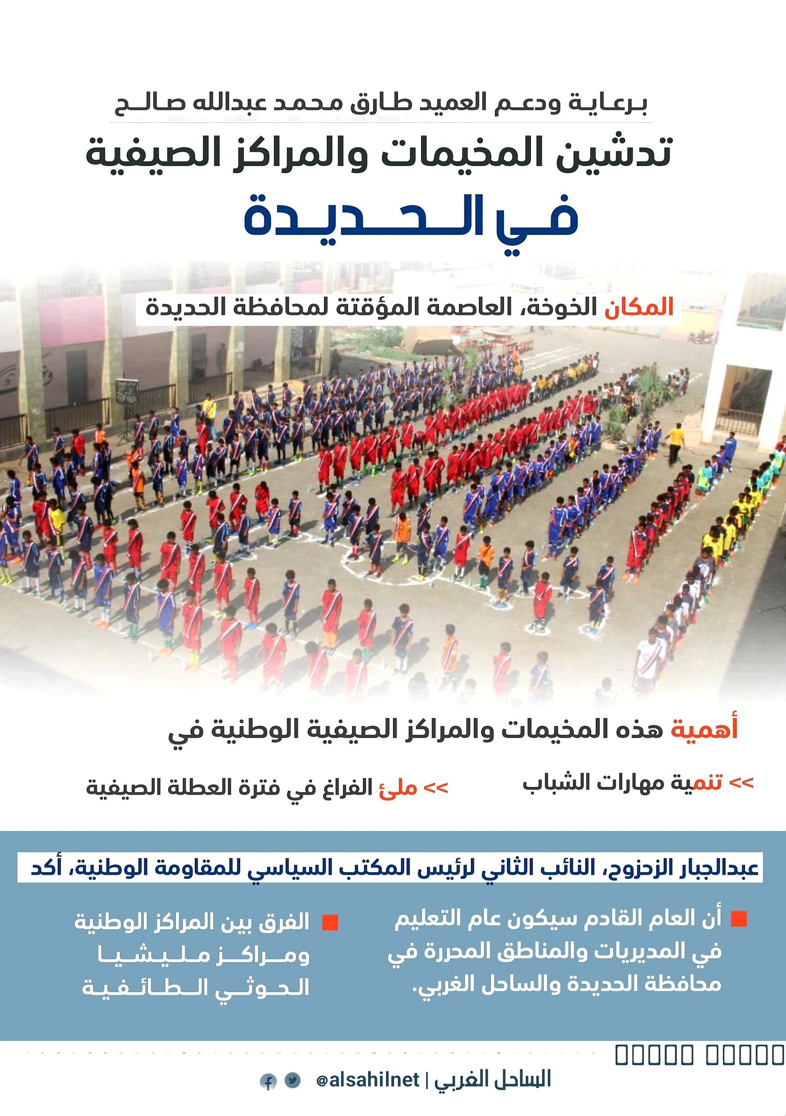 توازيا مع مخيمات تعز- المخا- ذوباب المندب.. انتظام المراكز الصيفية "الوطنية" في الحديدة