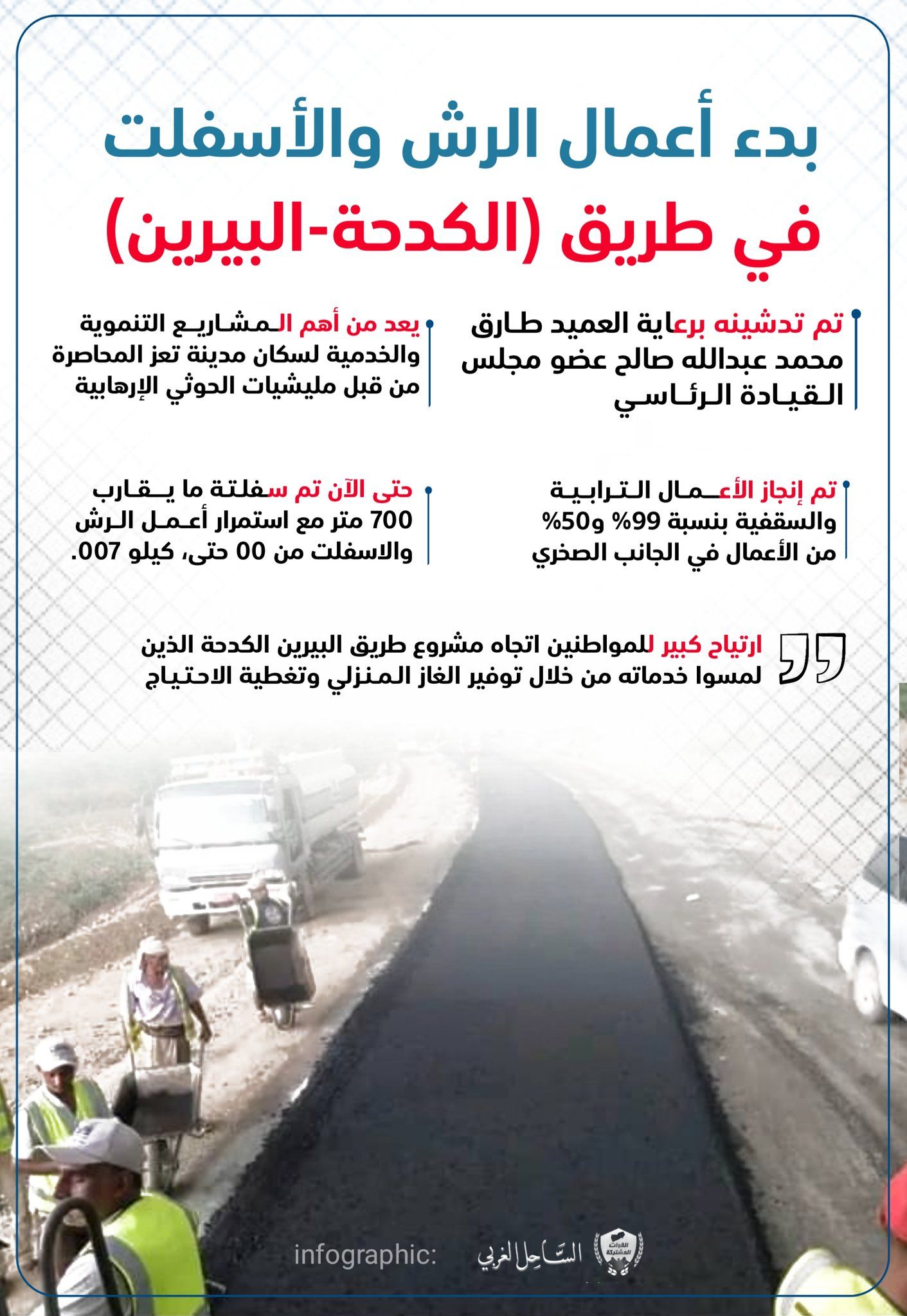 بدء أعمال الرش والأسفلت في طريق الكدحة- البيرين