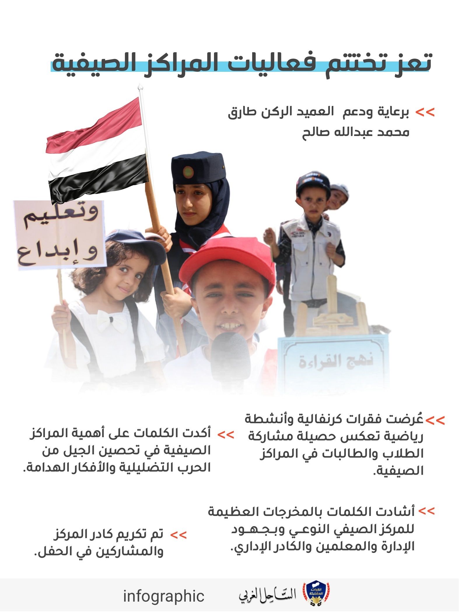بدعم العميد طارق.. تعز تختتم المخيمات الصيفية