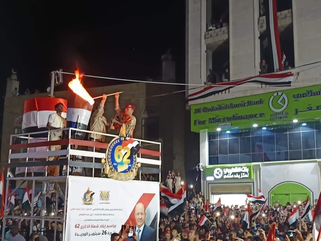 تعز تحتفل بإيقاد شعلة العيد الوطني الـ62 لثورة 26 سبتمبر وسط حضور جماهيري ورسمي مهيب