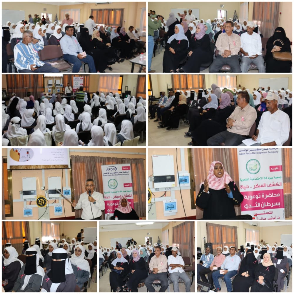 بمناسبة شهر أكتوبر الوردي نظمت جمعية عبود 84 الاجتماعية التنموية بعدن محاضرات توعوية حول سرطان الثدي وأهمية الكشف المبكر ، و تأتي المحاضرات التوعوية التي أقيمت بثانوية عدن النموذجية للبنات و برعاية شركة عدن لتطوير الموانئ ، و تحت شعار الكشف المبكر. .. حياة