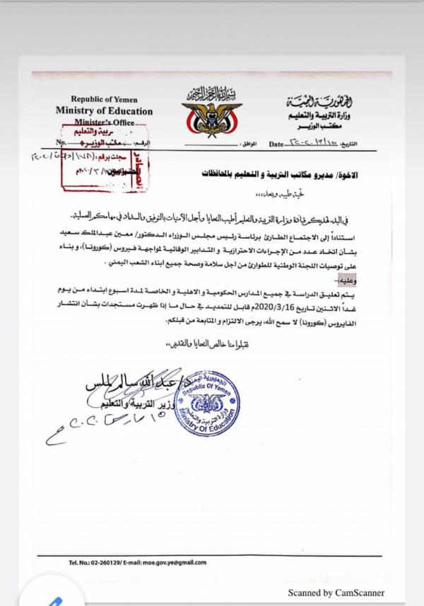 التربية تعلن تعليق الدراسة لمدة أسبوع بسبب "كورونا"