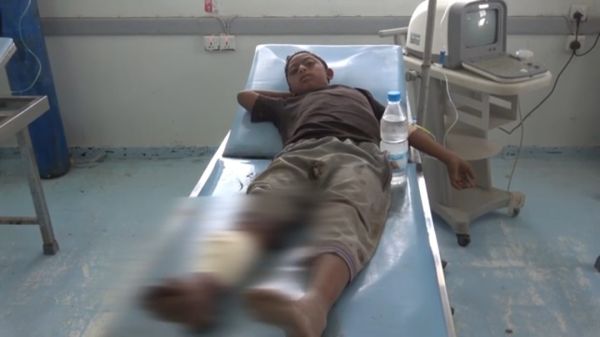 إصابة طفل برصاصة قناص حوثي بحيس (فيديو)
