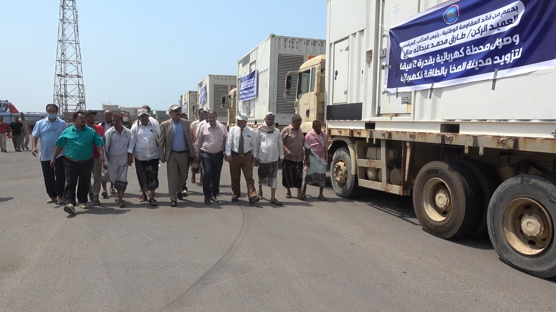 هذا وجرى نقل المولدات من الميناء إلى محطة توليد الكهرباء بمدينة المخا وسط فرحة عارمة بين المواطنين.