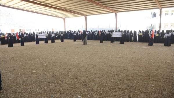الوقفة النسائية أمام مقر المنظمات الإنسانية الدولية (فندق اللوفر) ، والتي نفذتها العشرات من نساء مديرية العبدية والمديريات والمحافظات الأخرى الساكنين في عاصمة المحافظة، تنديدا بالصمت الإقليمي والعالمي وتنصل كل المنظمات الاممية والحقوقية والإنسانية عن واجبها الانساني لليوم الـ 22 على سكان مديرية العبدية جراء حصار مليشيا الحوثي ومنع دخول الإمدادات الغذائية والمياه ومختلف الاحتياجات الإنسانية