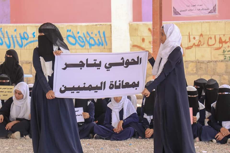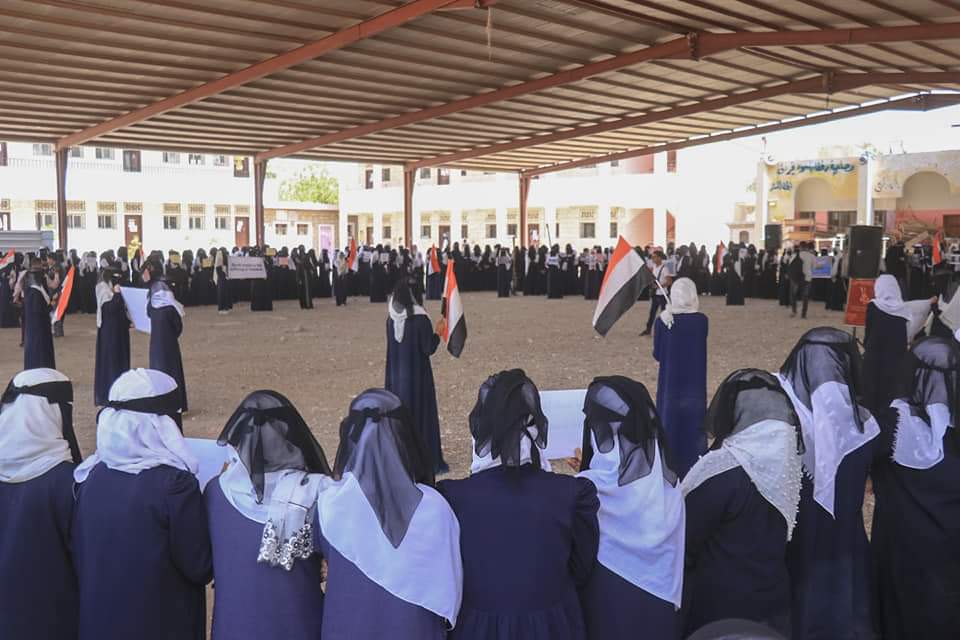 في مدرسة بلقيس الثانوية للبنات بمدينة مأرب استنكرت الطالبات صمت المجتمع الدولي ازاء الاستهداف الممنهج من قبل مليشيا الحوثي الإرهابية للمدنيين في الأحياء السكنية في عاصمة المحافظة والمديريات بالصواريخ البالستية والمسيرات، آخرها استهداف حي الروضة بمأرب واسفر عن سقوط 35 مدنيا بين شهيد وجريح أغلبهم من الاطفال والنساء وبينهم زميلتهن "حماس".