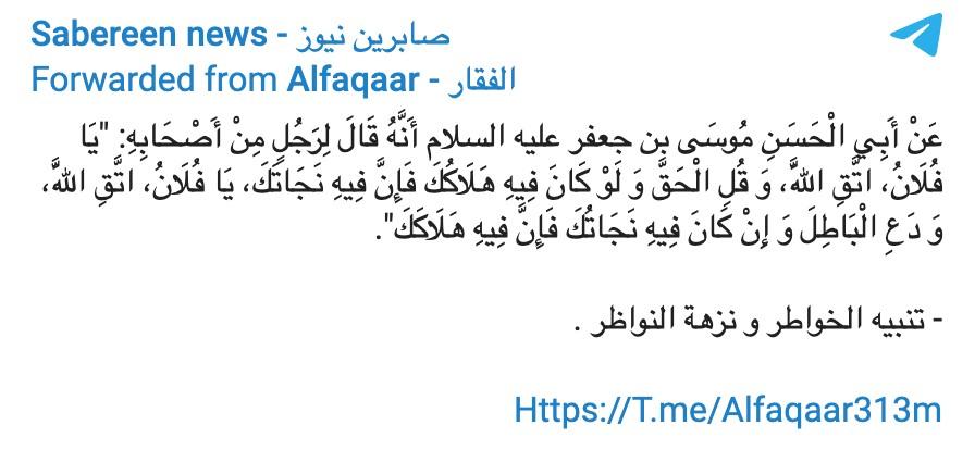واختتمت "صابرين": "المقاومة قرار عراقي بحت". هذا شعور يكرره الخزعلي بانتظام، كما ذُكِر أعلاه. ثم أعادت "صابرين" نشر رسالة من قبل الفقار، تم تقييمها أيضاً على أنها وسيلة إعلام تابعة لـ «عصائب أهل الحق»، مستشهدة بأحاديث تقول: "اتق الله وقل الحق ولو كان فيه هلاكك فإن فيه نجاتك، يا فلان اتق الله ودع الباطل ولو كان فيه نجاتك فإن فيه هلاكك". وهذا اتهام ضمني بأن «كتائب حزب الله» تسئ تمثيل نفسها على أنها مقاومة حقيقية.