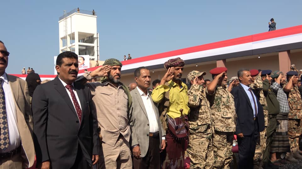 وتخلل الحفل أوبريت معبر عن المناسبة بعنوان "على درب الشهداء" اداه الفنان محمد الوديع وكورال من طلاب مدارس المديريات المحررة بالساحل الغربي.