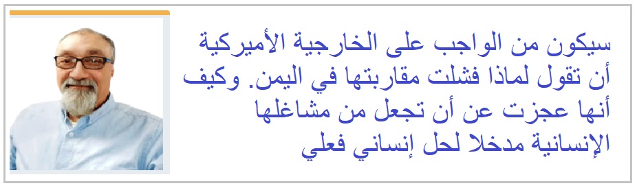 سيكون من الواجب على الخارجية الأميركية أيضا أن تقول لماذا فشلت مقاربتها في اليمن. وكيف أنها عجزت عن أن تجعل من مشاغلها الإنسانية مدخلا لحل إنساني فعلي.