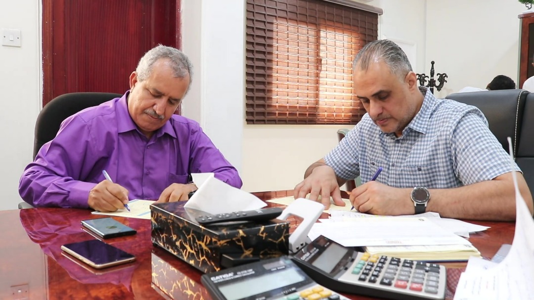 وقع المهندس معين محمد الماس رئيس مجلس إدارة صندوق صيانة الطرق والجسور المركز الرئيسي-العاصمة عدن مع المهندس علي احمد حسن المدير العام التنفيذي للمؤسسة العامة للطرق والجسور كمقاول لتنفيذ المشاريع في عدن.