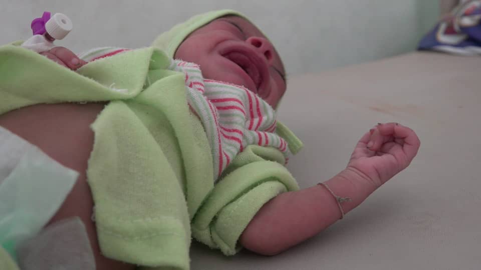 كانت الصغيرة تبكي عندما تركتها والدتها على سرير المستشفى، وبدأ الطبيب المعالج بتقديم المساعدة،