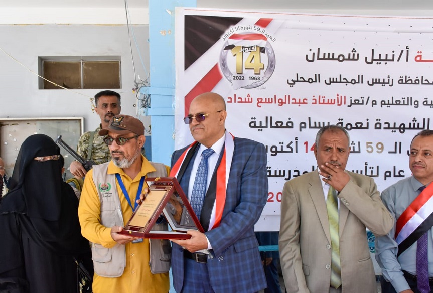 وفي مستهل كلمته في احتفالات جامعة تعز ومدرسة الشهيدة نعمة رسام نقل المحافظ شمسان تهاني وتحيات فخامة رئيس مجلس القيادة الرئاسي الدكتور رشاد العليمي وجميع أعضاء المجلس الرئاسي للطالبات والطلاب وجميع أبناء المحافظة، مؤكدا أن تعز اليوم وكل يوم تشهد احتفالات في الجامعات والمدارس تقديرا للأدوار البطولية النضالية والتضحيات الجسيمة والفكر الثوري والواحدية في الثورة والنضال والإرادة بين الشمال والجنوب وصولا للاطاحة بالإمامة في الـ26 من سبتمبر وإجبار المستعمر على الرحيل من جنوب الوطن.