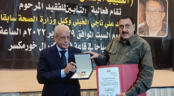 كرم مجلس القيادة الرئاسي الفقيد الدكتور أحمد علي ناجي، بمنحه وسام الواجب من قبل الدكتور يحيى الشعيبي مدير مكتب الرئاسة، كما كرمت جامعة عدن الفقيد الدكتور احمد علي ناجي بدرع الجامعة قدمه الأستاذ الدكتور الخضر ناصر لصور وتسلمه شقيق الفقيد اللواء مطهر الشعيبي، في فعالية إحياء مئوية الفقيد الدكتور احمد علي ناجي، التي أقيمت، السبت، في قاعة كورال بمديرية خور مكسر بحضور رسمي وشعبي كبير.