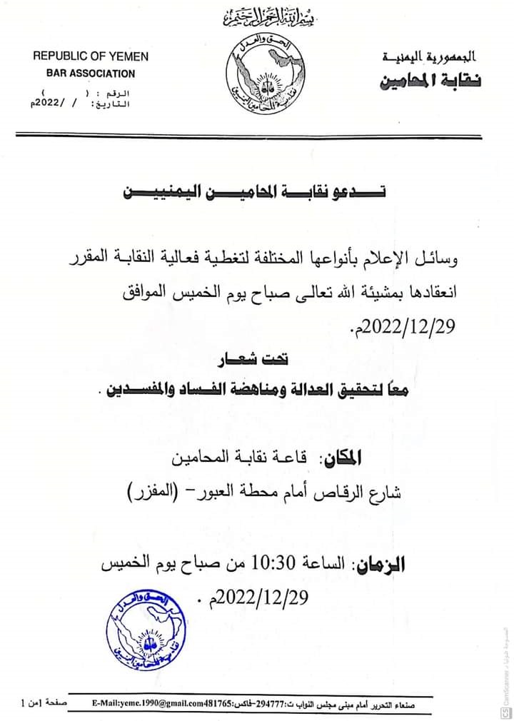 - في مواجهة "الاعتداءات والتجاوزات".. "المحامين اليمنيين" ماضية في التئام موسع بصنعاء