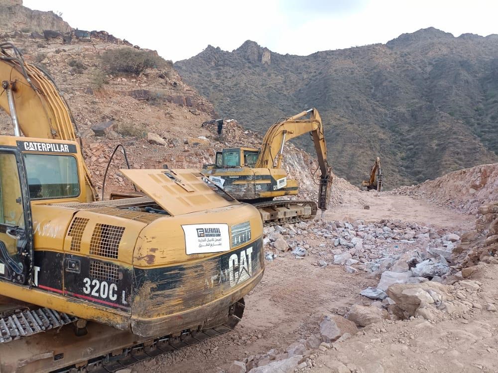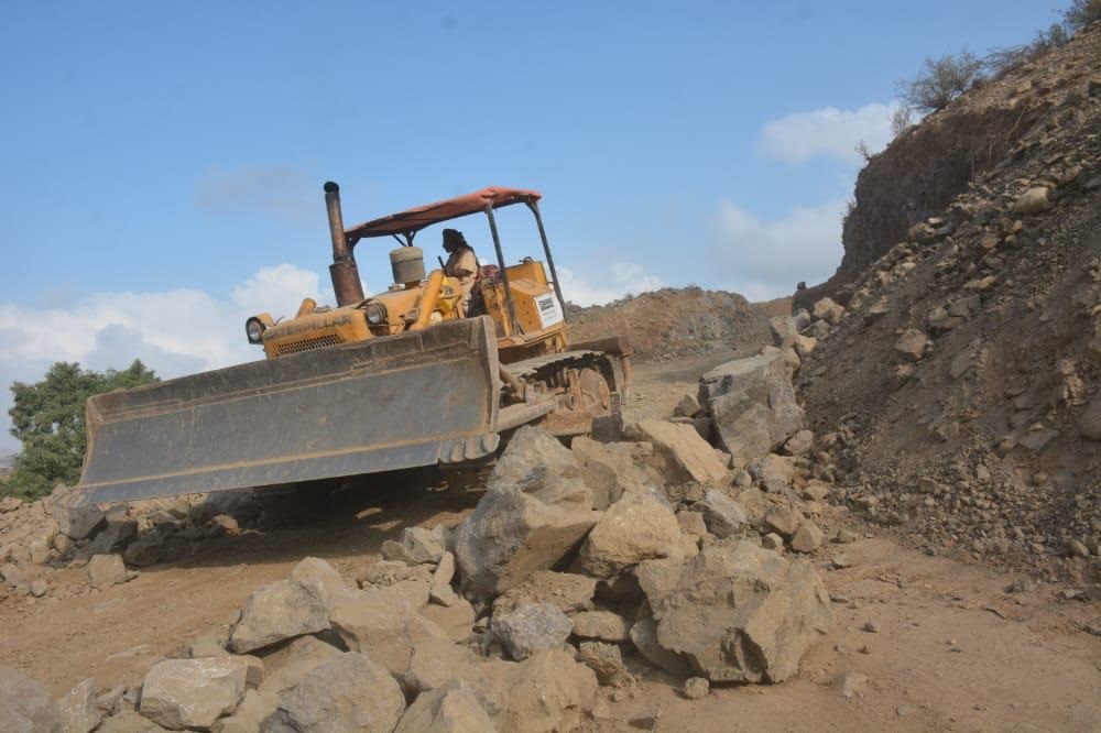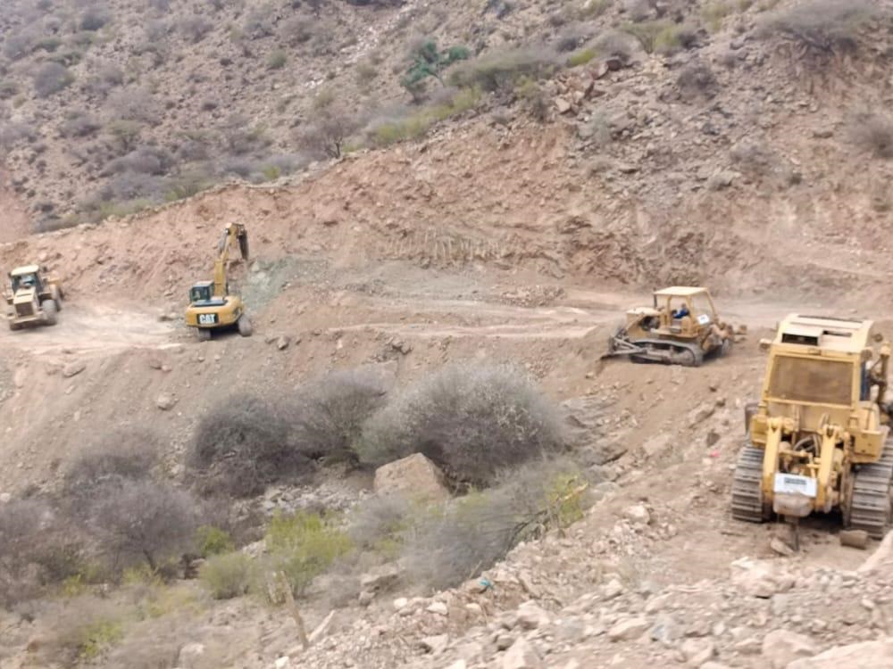 أشغال مشروع كسر الحصار عن تعز، الطريق الاستراتيجي الكدحة - البيرين تتقدم بخطى ثابتة وتتعمق قدما في الجبال والمنحدرات دون توقف.