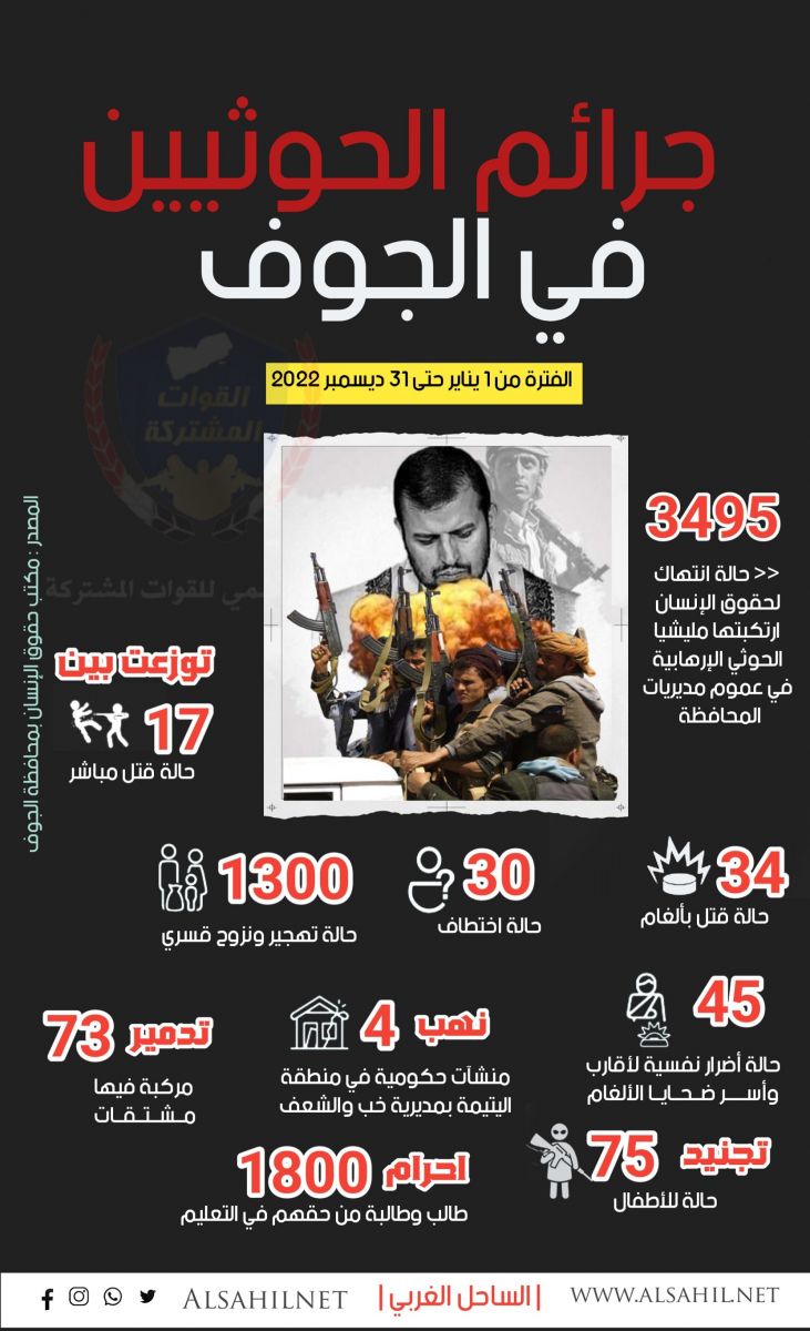توثيق 3495 انتهاكاً ارتكبتها مليشيا الحوثي في الجوف خلال 2022