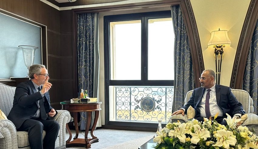 التقى عضوا مجلس القيادة الرئاسي، اللواء عيدروس الزُبيدي، واللواء سلطان العرادة، الاثنين 16 يناير/ كانون الثاني 2023، في العاصمة السعودية الرياض، سفير الاتحاد الأوروبي لدى اليمن جابريل فينالس.