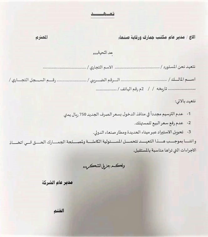 أجبرت مليشيات الحوثي الإرهابية، التجار على توقيع تعهدات بوقف الاستيراد عبر المنافذ الخاضعة لسيطرة الحكومة، وقصر الاستيراد عبر ميناء الحديدة ومطار صنعاء الخاضع لسيطرتها.
