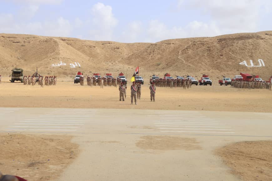 تفقد وزير الدفاع الفريق الركن محسن محمد الداعري ومعه رئيس هيئة الاركان العامة قائد العمليات المشتركة الفريق الركن صغير بن عزيز وقائد قوات الدعم والاسناد في التحالف اللواء سلطان البقمي، اليوم، محور الغيضة العسكري بمحافظة المهرة.