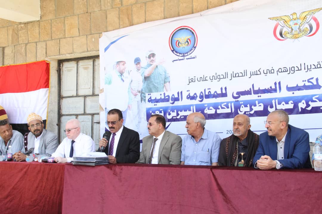 وثمنوا عاليًا دور العميد طارق صالح الذي يولي إنجاز هذا المشروع، وكل ما من شأنه تخفيف وطأة الحصار الحوثي على مدينة تعز، جل اهتمامه.
