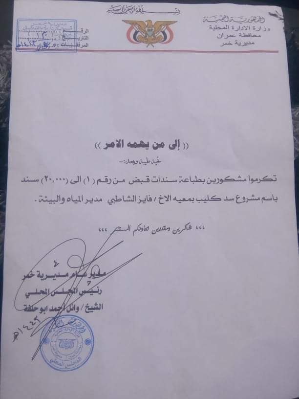 وثائق ومحررات مالية ومراسلات حصل على نسخة منها الساحل الغربي بوقائع وفضائح فساد كبير وعبث وتلاعب قيادات مليشيات الحوثي على صلة وبأثر رجعي بمشروع سد مائي في مديرية خمر بمحافظة عمران.