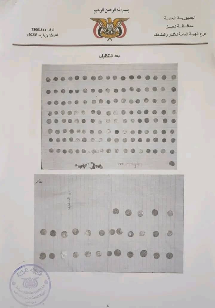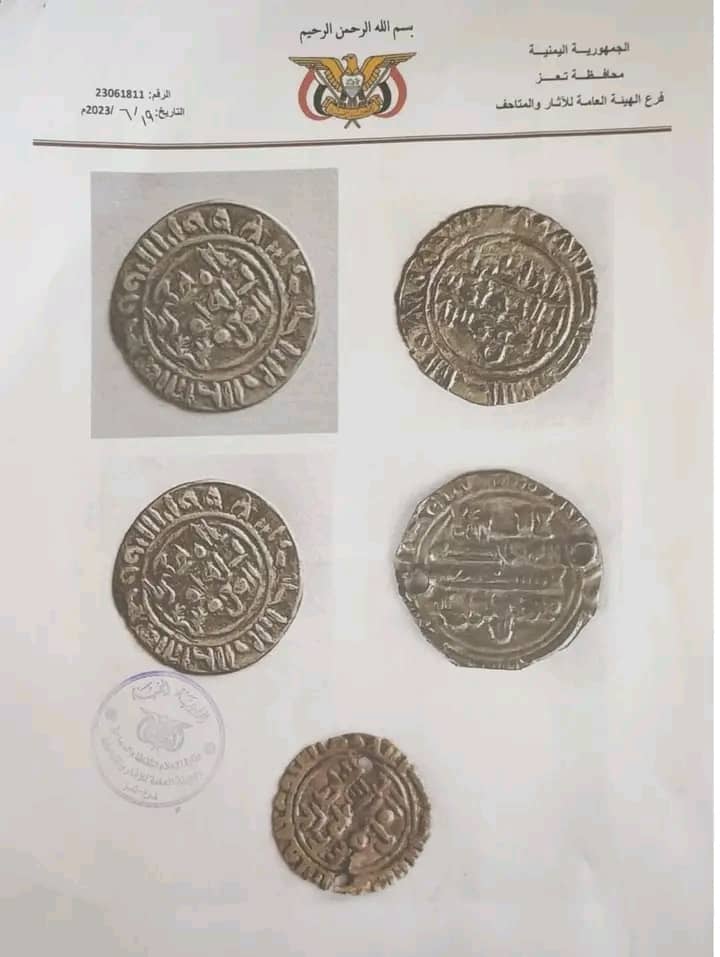 توضيح حول المسكوكات النقدية الاثرية التي عثر عليها في قرية السعي بمديرية الشمايتين بتعز