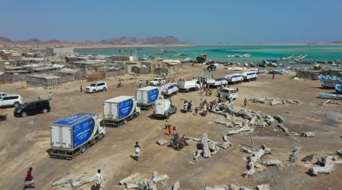 الخلية الإنسانية توزع المساعدات الغذائية في باب المندب بدعم من الهلال الأحمر الإماراتي