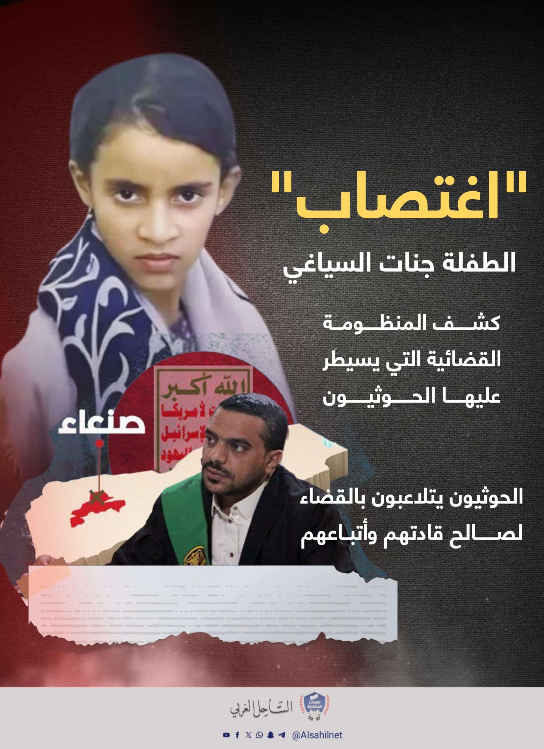 إنفوجرافيك| اغتصاب الطفولة واستغلال القضاء: جنات السياغي تكشف التلاعب الحوثي