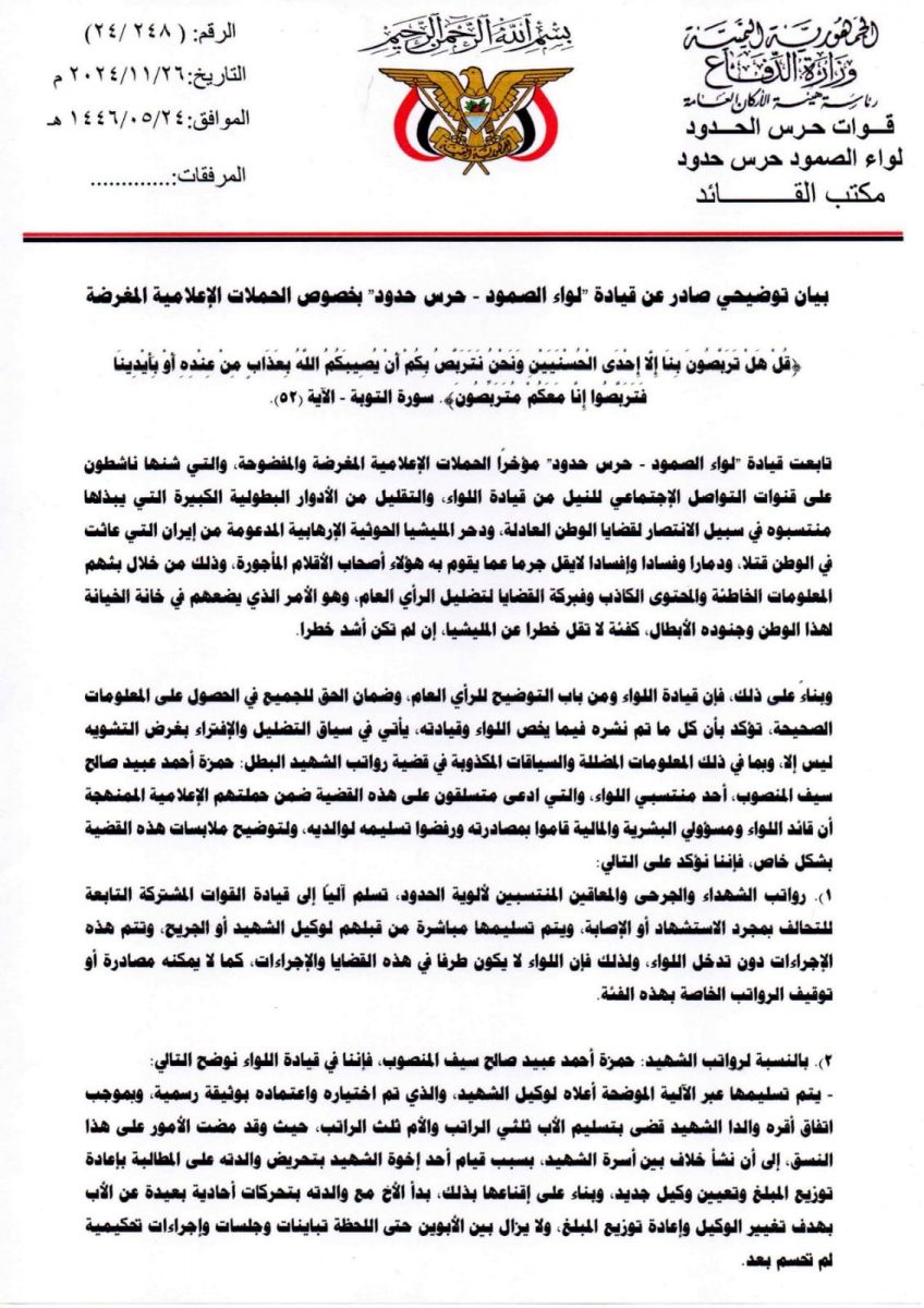 جدد الفريق #طارق_صالح التأكيد أن المقاومة الوطنية باقية على عهدها وهدفها: «مواجهة الحوثي وتحرير العاصمة المختطفة»، رافضاً الانجرار لأي مواجهة داخل المناطق المحررة أو إهدار الجهود في صراعات لا تخدم المعركة الكبرى