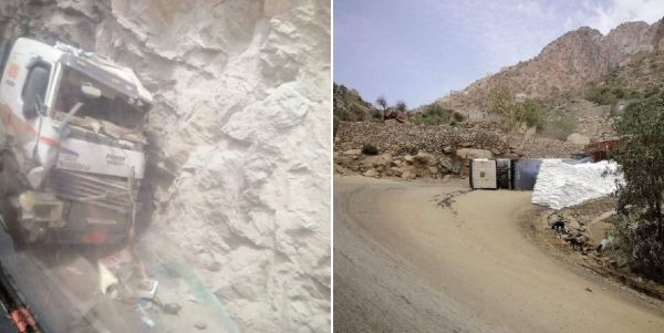 لحج-تعز: انقلاب شاحنتين في نقيل ظمران يتسبب في إعاقة حركة المركبات - صور