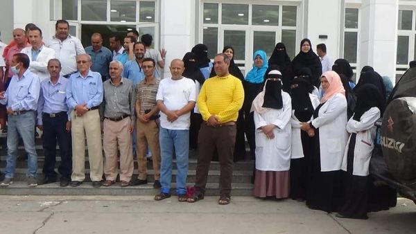 هددوا بالإضراب الشامل.. وقفة احتجاجية لموظفي مستشفى الثورة بتعز