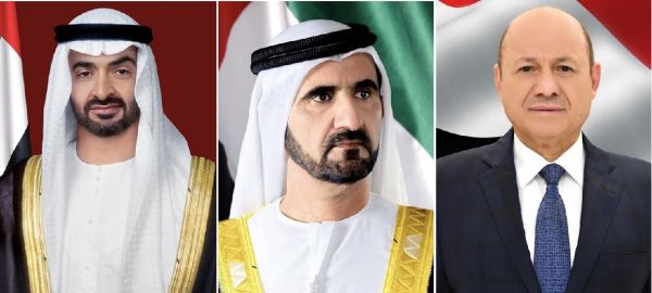 تلقى الرئيس الدكتور رشاد العليمي، رئيس مجلس القسادة الرئاسي، برقية تهنئة من الشيخ محمد بن زايد آل نهيان رئيس دولة الإمارات العربية المتحدة، بمناسبة اليوم الوطني