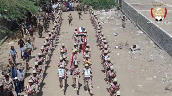 في موكب جنائزي مهيب تقدمته قيادات المقاومة الوطنية وقيادات القوات المشتركة.. شيع اليوم الجمعة 17 ابريل 2020م في مدينة المخا المناضل الشهيد العميد عبد مسعد الصباري