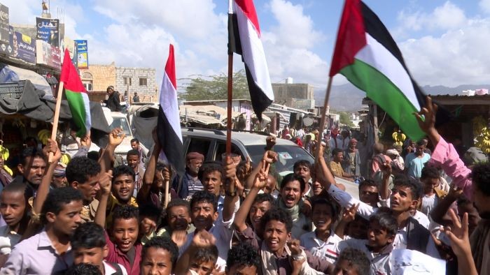 فيديو: أبناء ذو باب المندب يحيّون نضالات الشعب الفلسطيني ويستنكرون متاجرة أدوات إيران