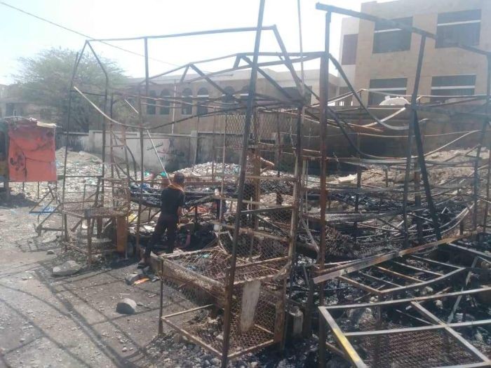 تعز: حريق هائل يلتهم سوقاً للنساء ويتسبب في أضرار مادية