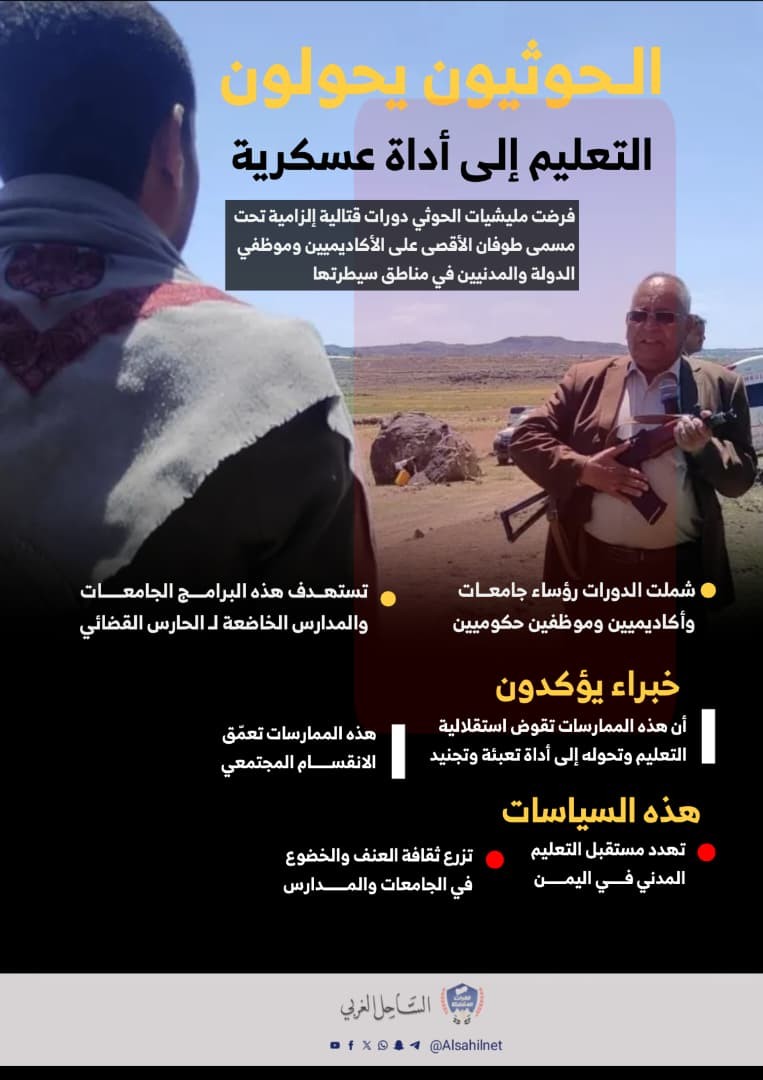 إنفوجرافيك| حوثنة التعليم.. مشروع تجهيل وتعبئة يهدد أجيال اليمن