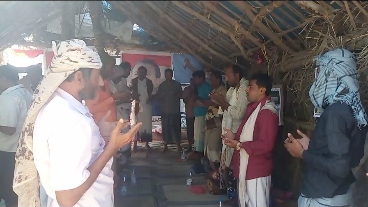 وقُرئت الفاتحة في بداية الاجتماع على روح الشهيدين، الزعيم علي، عبدالله صالح ورفيق دربه الأمين عارف الزوكا، وعلى أرواح المدنيين ضحايا مجازر المليشيات الإرهابية.