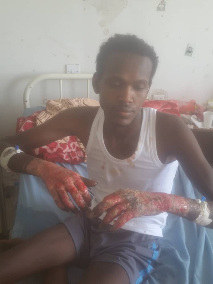 وعلى الرغم من إصاباته، فقد انضم إلى الناجين وأقارب القتلى خارج مبنى المفوضية السامية للأمم المتحدة لشؤون اللاجئين في صنعاء للمطالبة بتحرك دولي لمحاسبة الجناة.